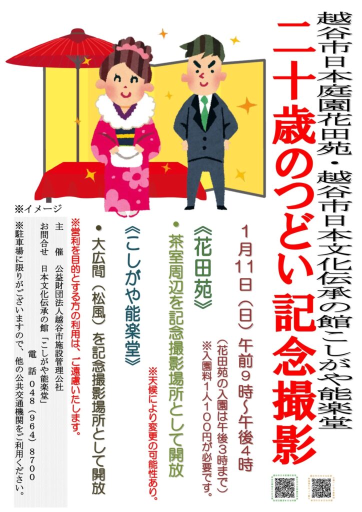 越谷市の二十歳のつどいに参加される皆様に、記念撮影場所として、大広間(松風)に金屏風を設置し、開放いたします。